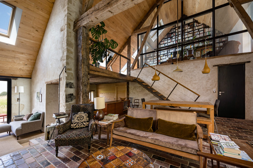 Cette sublime rénovation d’une grange dans le Perche est signée Pierre BOURLIER. Architecte spécialisé dans les constructions traditionnelles son activité est aussi axée sur secteur de la construction neuve en bois et de l’architecture bioclimatique.